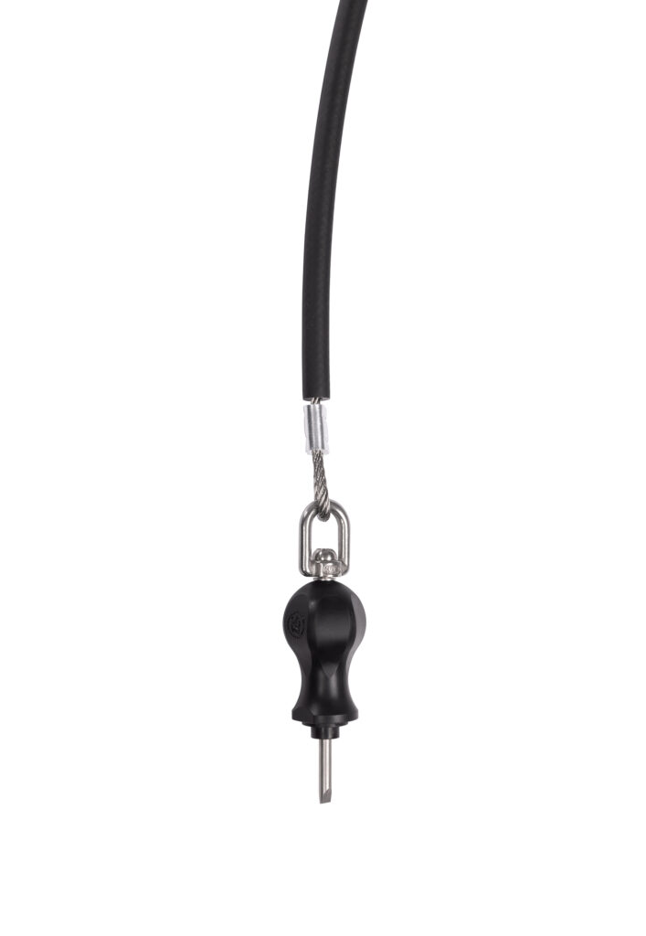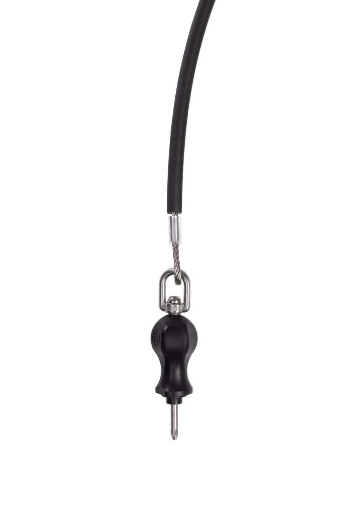 I cacciaviti tradizionali usati nelle stazioni pubbliche spesso causano problemi agli utenti – i loro cavi di sicurezza si attorcigliano, si intrecciano o limitano la libertà di movimento, anche quando viene utilizzato uno snodo doppio su un anello tondo. IBOMBO ha sviluppato una tecnologia che elimina completamente questo problema. Lo snodo integrato e unilaterale permette al cacciavite di ruotare completamente e senza intoppi, mentre il cavo rimane in posizione fissa. Di conseguenza, lo strumento funziona in modo leggero e intuitivo, rendendo il lavoro alla stazione di riparazione più confortevole e preciso.