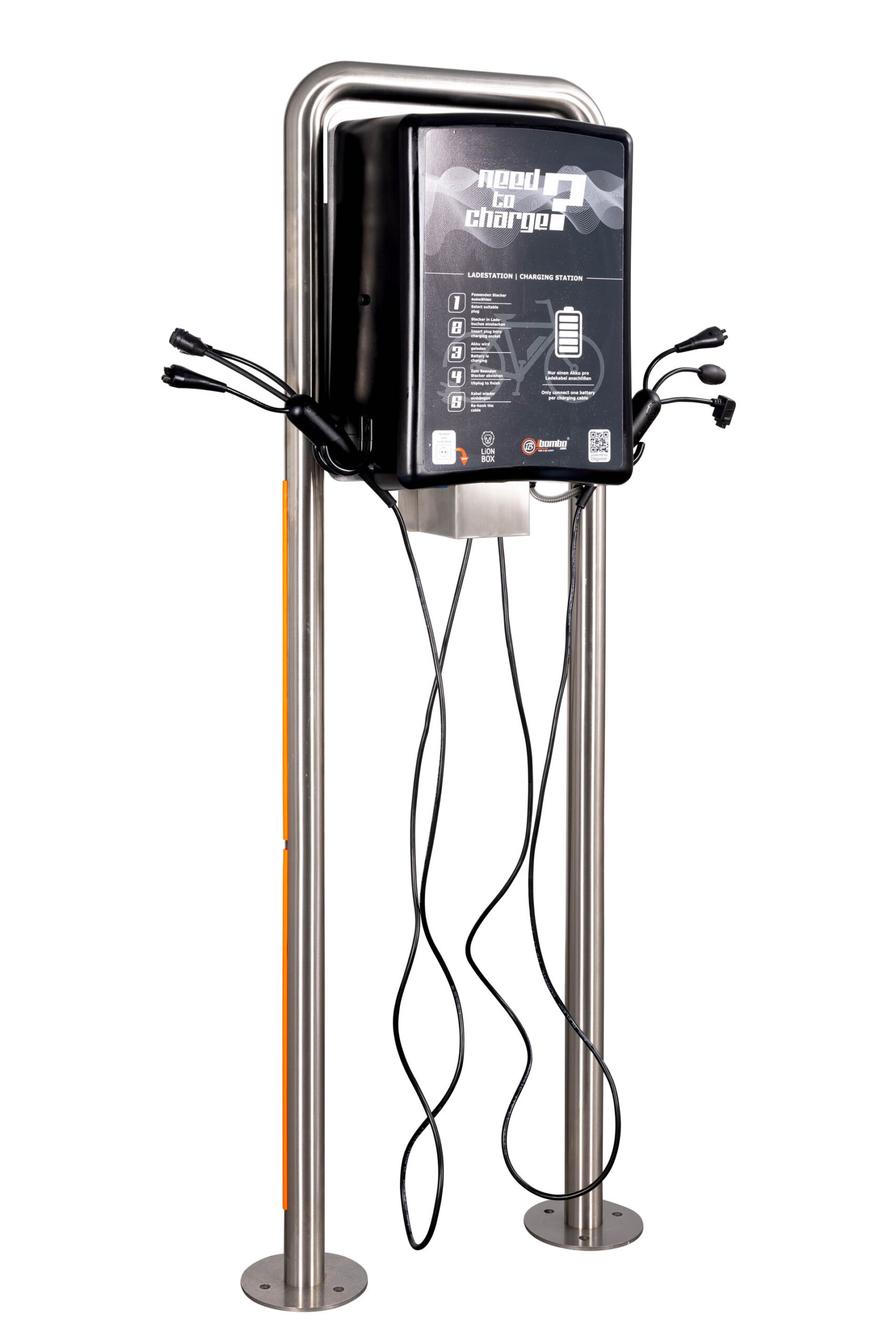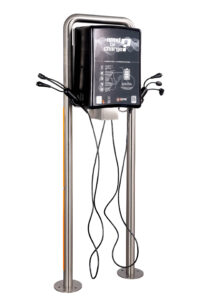 La struttura solida delle nostre stazioni di riparazione per e-bike è solo uno dei due principali vantaggi. Il secondo, ma altrettanto importante, riguarda l’ottimizzazione degli aspetti operativi e di sicurezza. Nei nostri progetti che combinano le caratteristiche delle stazioni di riparazione e di ricarica, la parte anteriore è destinata al primo di questi compiti, mentre la parte posteriore è utilizzata per la ricarica. Grazie all’omega sul retro della stazione, realizzato in acciaio e fissato con viti antifurto, proteggiamo il cavo elettrico da manipolazioni dall’esterno. Il nostro modulo presenta inoltre caratteristiche di sicurezza coerenti con le direttive dell’Unione Europea relative alla fornitura di prese elettriche negli spazi pubblici.