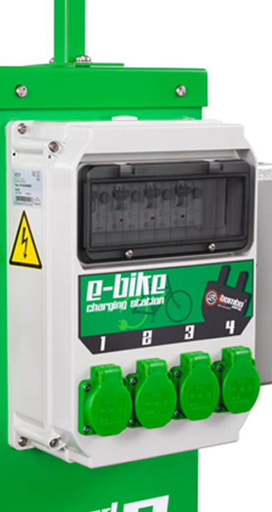 Il caricabatterie è progettato per caricare le biciclette elettriche e non può essere collegato a nulla con potenza superiore. È adatto per l’uso in luoghi pubblici. Dispone di 4 prese per il collegamento e le protezioni sensibili da sovracorrente residua soddisfano tutti gli standard UE relativi all’uso delle prese da parte di persone non autorizzate/non qualificate. L’accesso al modulo di ricarica e ai fusibili è protetto mediante viti di sicurezza.
