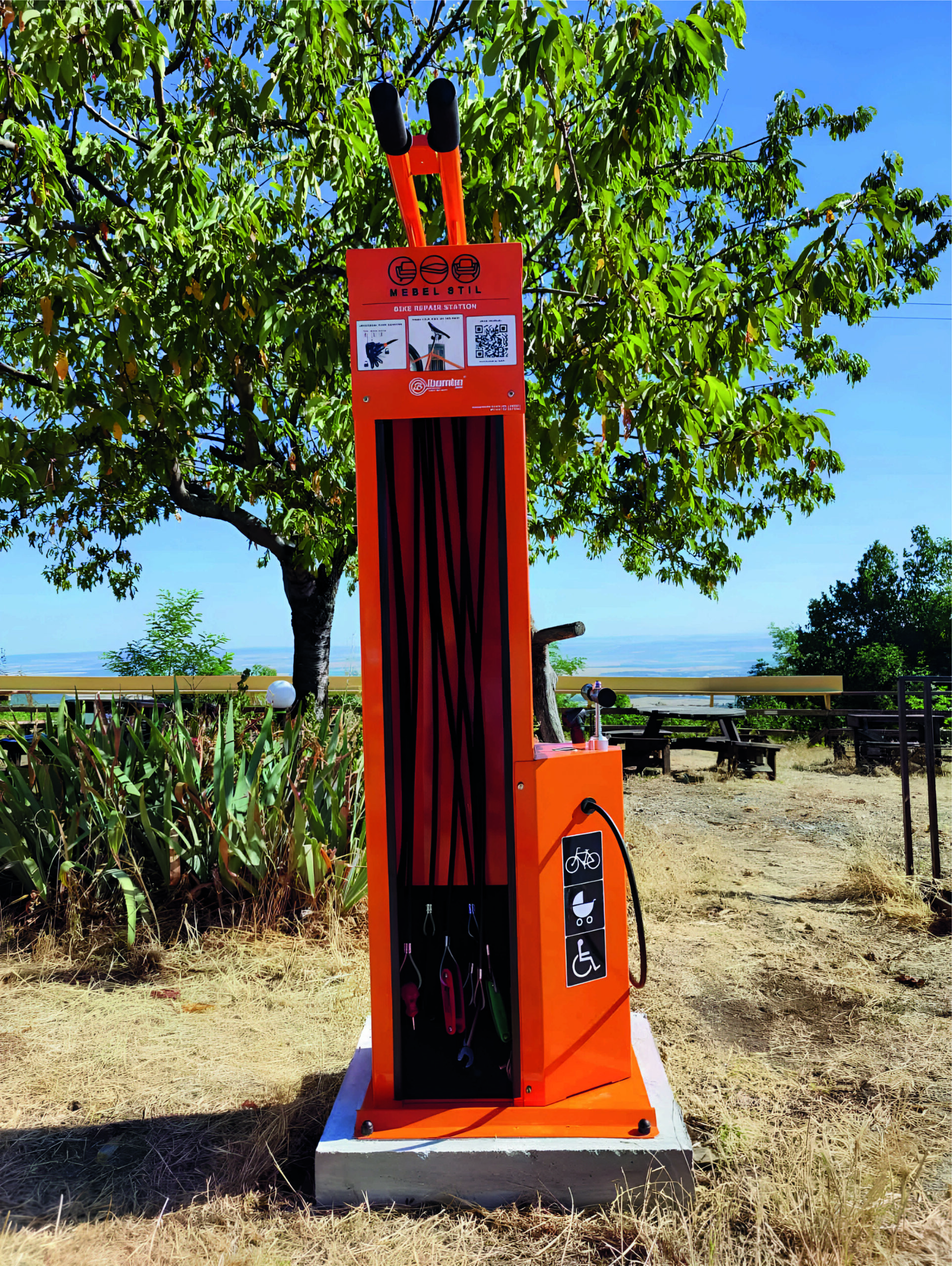 Il QR CODE posto sul fronte della stazione permette di utilizzare le pubblicazioni online contenenti istruzioni per la riparazione dei guasti alla bicicletta. Gli elementi in lamiera dell’apparecchio vengono fissati con viti antifurto – le punte per queste viti verranno consegnate al cliente. Questo modello di stazione può essere inoltre dotato, tra l’altro, di telai impermeabili in alluminio, portabici laterale o posteriore, supporto pneumatico per skateboard o modulo di ricarica per biciclette E-BIKE.