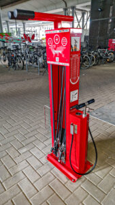 Stazione di riparazione biciclette self-service – IBOMBO SCANDIC è, come tutte le nostre stazioni, adattata per l’uso negli spazi pubblici. È una versione compatta del nostro modello di punta IBOMBO PRS-LV2.